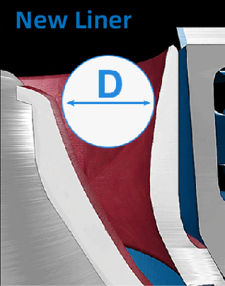 Constant crushing cavity type maintains a constant maximum feeding size and effective cavity cubage throughout entire lining wear period.