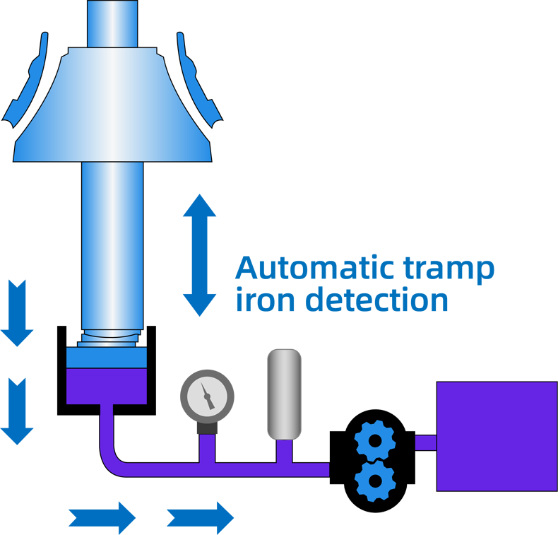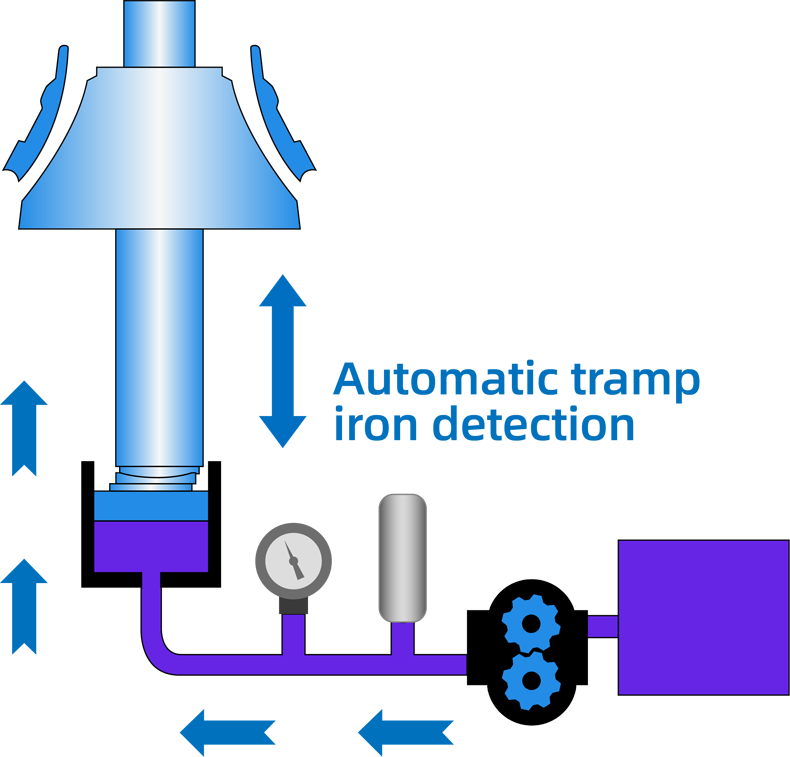 It is equipped with multiple automatic control functions such as high-temperature protection, automatic tramp iron detection, overload protection, lubricant oil flow control, fault diagnosis, discharge opening calibration and wear diagnosis etc.