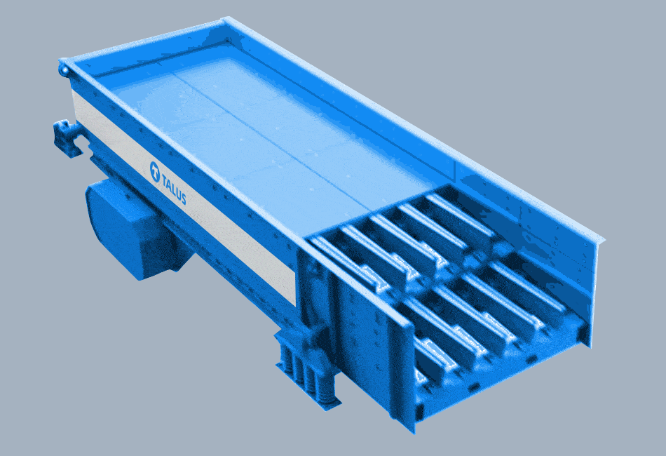 The vibrating feeder, also known as a pan feeder, is located in the front section of the primary crushing equipment. It is used to feed block and granular materials from the storage bin into the target production device evenly, regularly and continuously. The feeder also has a coarse screening function, removing soil and impurities from the materials and controlling feeding amount to match the processing capacity of subsequent crushing and screening production line. It is a necessary equipment for the complete production line with characteristics of sturdy structure, impact resistance and durability etc. It is used in crushing and screening combined equipment of metallurgy, coal mining, mineral processing, construction materials, chemicals, abrasives and other industries.